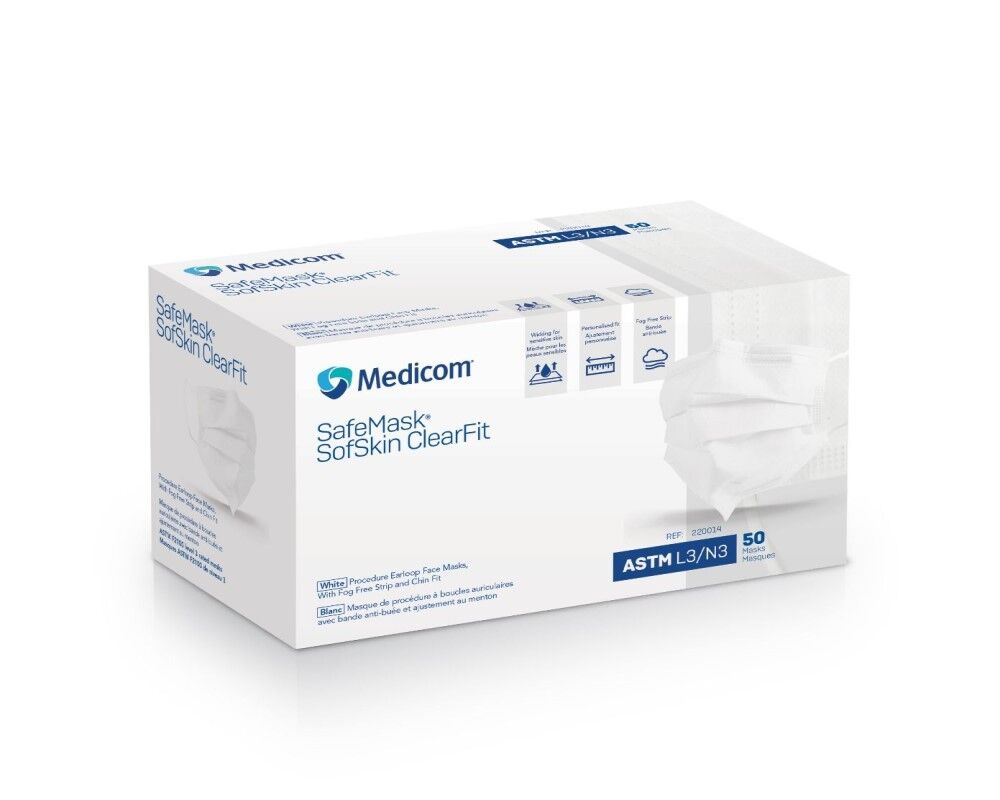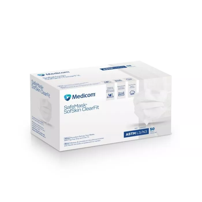SafeMask SofSkin ClearFit is made with added chin piece and an integrated fog–free strip that helps to prevent eyewear from fogging.