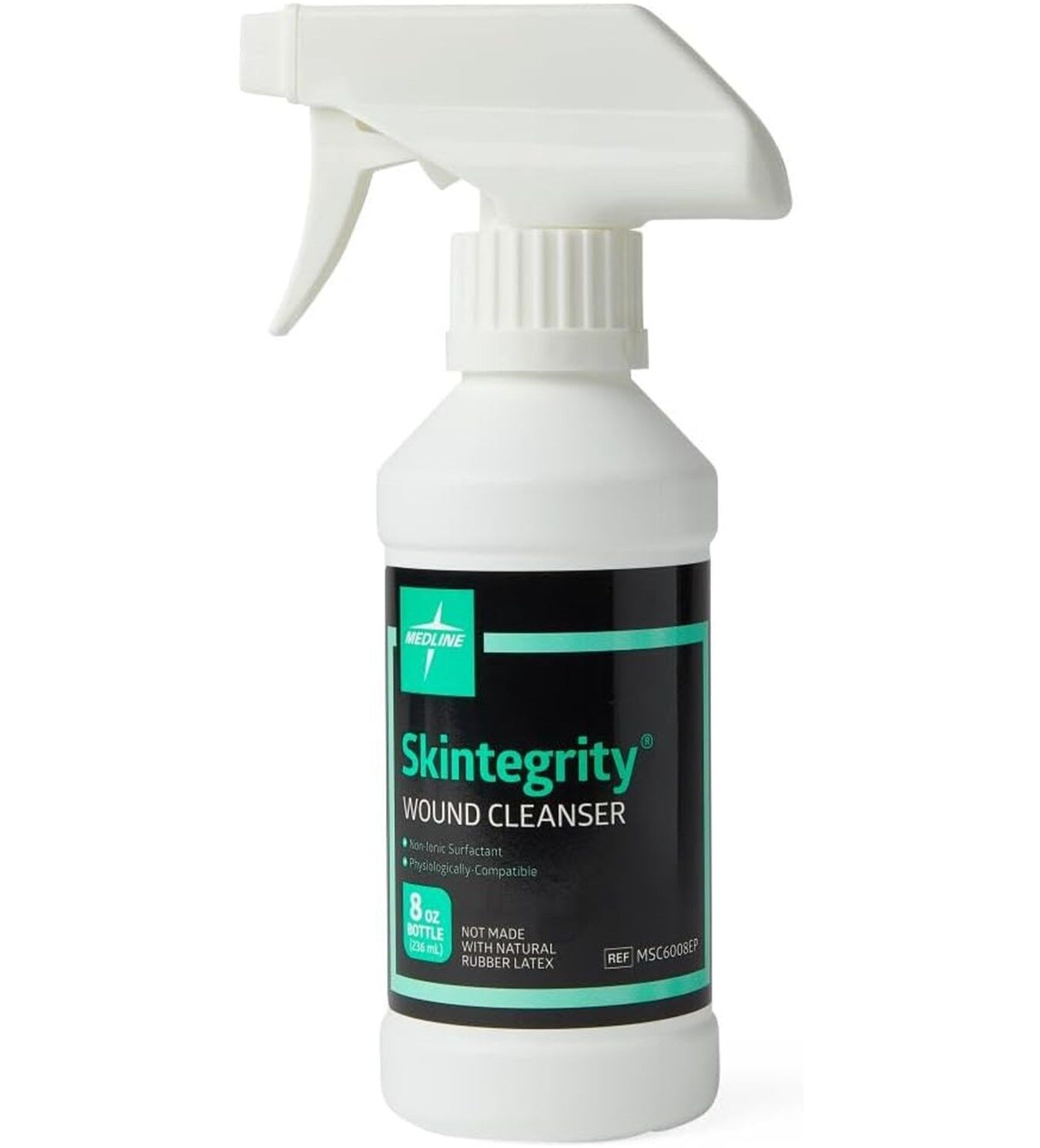 Keep wounds clean and promote optimal healing with the Medline Skintegrity Wound Cleanser, 8 oz (236 mL) Spray Bottle. This gentle, non-toxic, and effective wound cleanser is designed for everyday wound care, removing debris, dirt, and bacteria without irritating sensitive skin or damaging healthy tissue. Ideal for hospitals, clinics, and home healthcare use, it provides consistent cleansing power to support faster, safer healing.