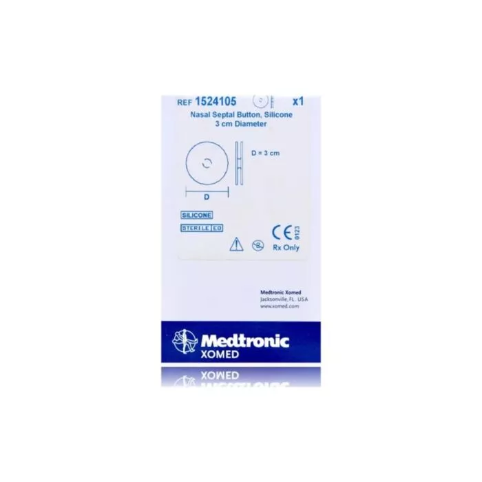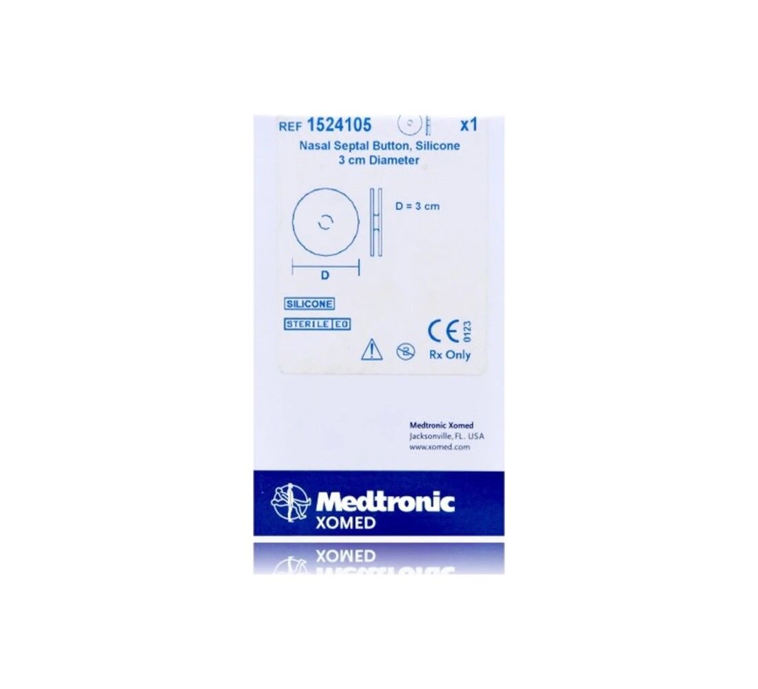 The Medtronic 1524105 Nasal Septal Button is a high-quality, medical-grade silicone implant designed for non-surgical management of nasal septal perforations. Ideal for ENT specialists and otolaryngology clinics, this 3 cm septal button effectively seals perforations, helping reduce nasal crusting, epistaxis (nosebleeds), whistling, and airflow disturbance.