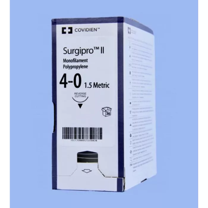 Uncoated Surgipro II sutures (clear or pigmented) are inert, non-absorbable, sterile sutures composed of an isotactic, crystalline stereoisomer of polypropylene and contain polyethylene. Surgipro II sutures are indicated for use in general soft tissue approximation and/or ligation, including use in cardiovascular, ophthalmic and neurological surgery. The suture is pigmented blue to enhance visibility.