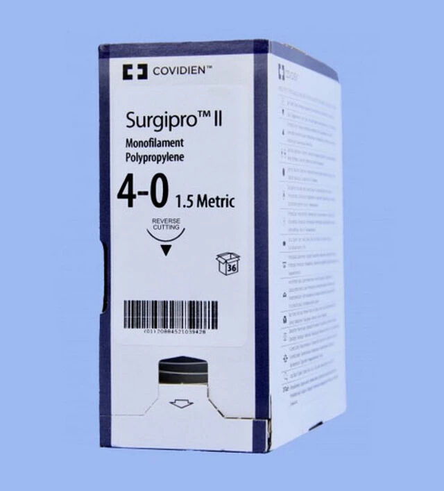 These sutures are available dyed blue for visibility or undyed clear. Surgipro sutures are indicated for use in general soft tissue approximation and/or ligation, including use in cardiovascular, ophthalmic, and neurological surgery.