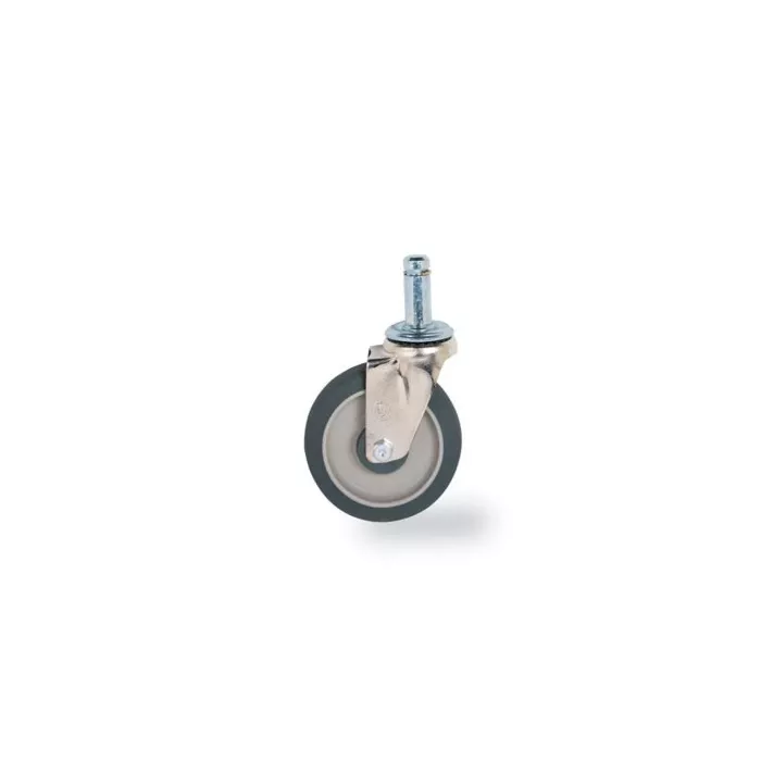 • Corrosion resistant performance: all-polymer horn, stainless steel axle andhardware, 5" (127mm) diameter polyurethane wheel, sleeve-style axle bearing,and an optional toe-operated brake mechanism.