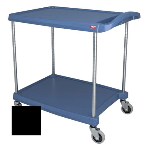 Cart handle has built-in recessed support channel to manage odd shaped items. Right-sized to fit glass and dish racks, bussing totes, silverware bins, milk crates. Chrome posts, 4” non-marking swivel casters. 150lbs capacity per shelf. Designed for your transport needs, making every step count. Available in 2-shelf and 3-shelf configurations. Deep ship’s edge lip around shelf perimeter. Easy no-tool assembly; ships knocked down. Available in gray (G), black (BL), blue (BU) which has built in Microban antimicrobial product protection & allergen purple (AP). NSF listed.