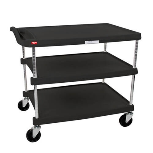 myCart Series Utility Cart, 3-shelves, open base, 27 11/16W x 40-1/4L x 36-7/8H including handle, heavy duty plastic shelf, with (4) swivel/resilient tread casters, 3-shelf cart has a 400 lb. capacity per unit, black, NSF