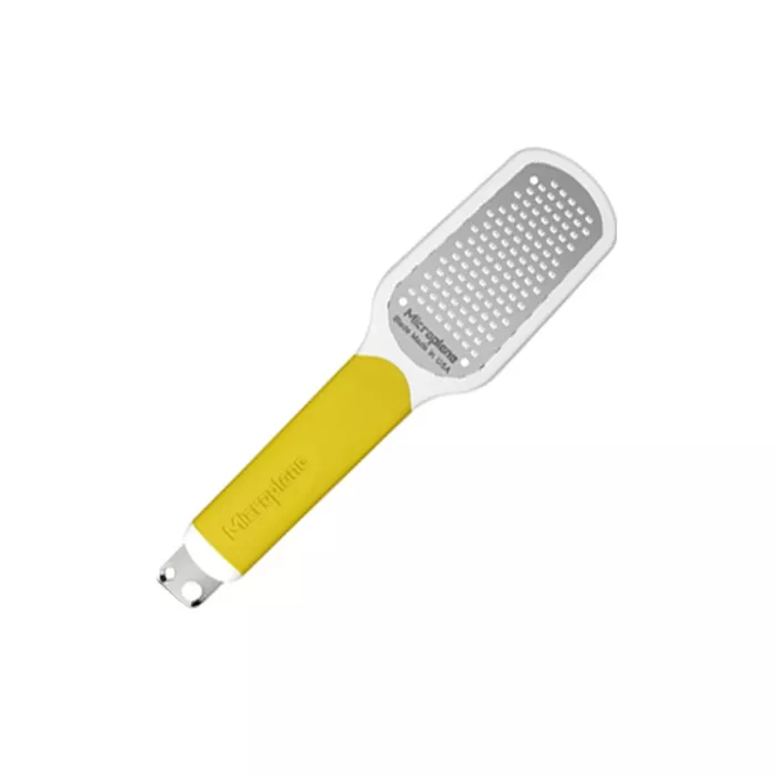 The popular, three-in-one Ultimate Citrus Tool from Microplane®, has been enhanced to more effectively create citrus peel garnishes. Sporting a new design featuring a larger zesting blade and a longer handle with a soft touch grip, the new Ultimate Citrus Tool perfectly zests oranges, lemons, limes and other types of citrus fruits, and can also be used to create gourmet-style garnishes and delicate peels to top dishes and beverages.The versatile Ultimate Citrus Tool features a surgical grade stainless steel Fine Microplane® blade – the company’s best-selling blade style – which excels in zesting the flavorful and aromatic peel of citrus fruit without grating into the bitter pith. In addition, the Ultimate Citrus Tool features two decorative garnishing blades in a large (.300-inch diameter) and small (.180-inch diameter) size. The blades are made in the USA and are dishwasher safe. Reusable cover included.