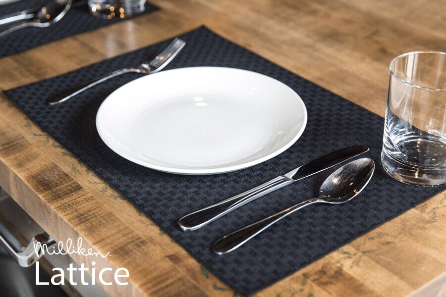 Milliken is a leading commercial textile innovator. The Lattice placemat line pairs performance polyester with an elegant lattice weave that endures daily service in foodservice and hospitality settings.