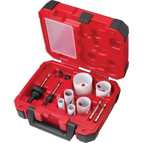 - Includes: (1) 7/8" Hole saw, (1) 1-1/8" Hole saw, (1) 1-3/8" Hole saw, (1) 1-3/4" Hole saw, (1) 2" Hole saw, (1) 2-1/2" Hole saw, (1) 3/8" Hex shank arbor, (2) 3-1/2" Pilot bits, (1) 1/8" Hex key, (1) 7/16" No-wobble arbor