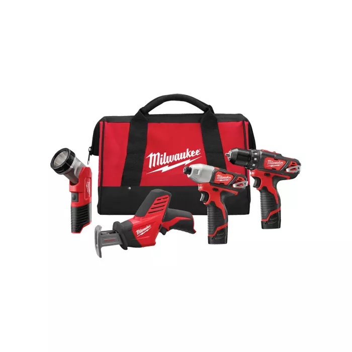 - Includes: M12™ 3/8" Drill/Driver, M12™ 1/4" Hex Impact Driver, M12™ Hackzall™ Recip Saw, M12™ Work Light