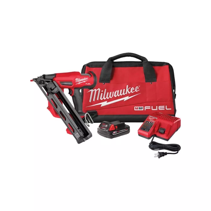 - Includes: M18 Fuel™ 15 Gauge finish nailer, M18™ Redlithium™ CP2.0 battery, M18™ & M12™ Multi-voltage charger, Contractor bag