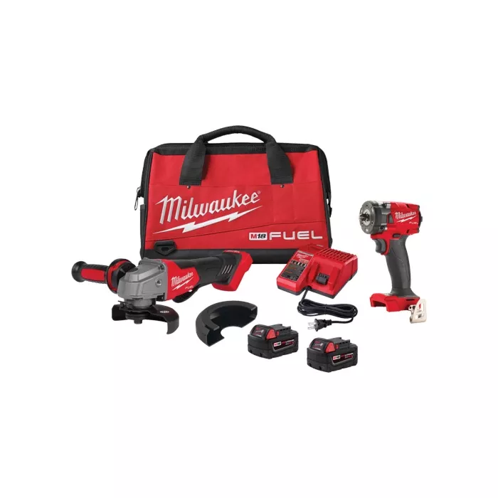- M18 Fuel™ 2-Tool Combo Kit features the M18 Fuel 4-1/2" / 5" Grinder Paddle Switch, No-Lock, and the M18 Fuel™ 3/8" Compact Impact Wrench w/ Friction ring