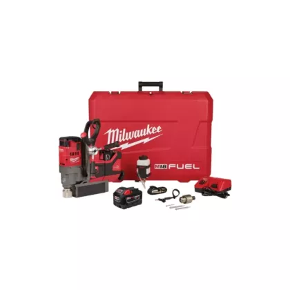 - Includes: (1) M18™ FUEL™ 1-1/2" Lineman Magnetic Drill, (2) M18™ REDLITHIUM HIGH OUTPUT™ XC8.0 Battery, (2) 1" Retractable Pilot Pins, (1) Safety Strap, (1) Magnetic Lubrication Tank, (1) Carrying Case, (1) Chuck Key, (1) AC/DC Vehicle Charger, (1) 3/4" Weldon to ½" Chuck Adapter