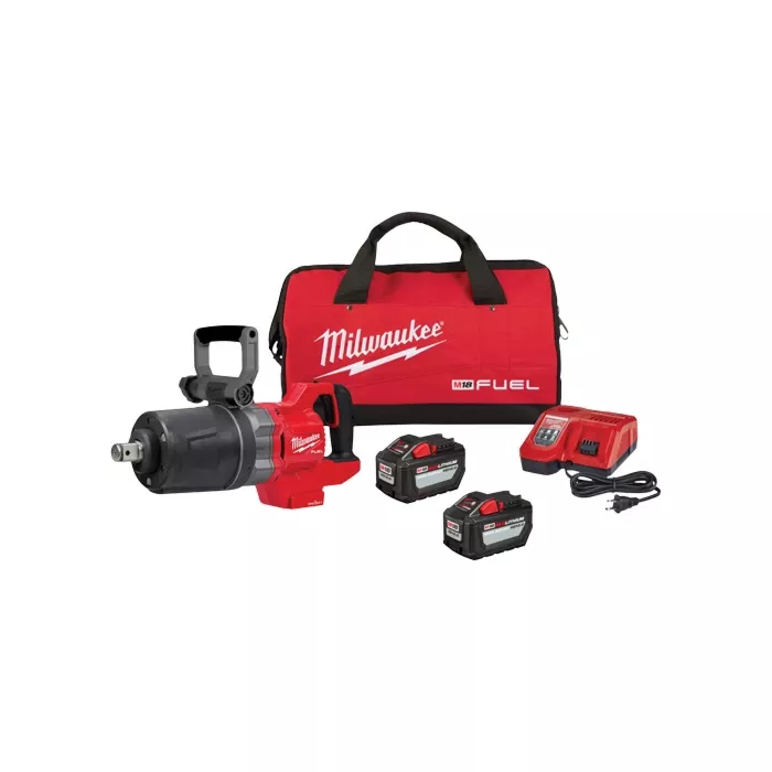 - Includes: (1) M18 Fuel™ One-Key™ D-handle high torque impact wrench, (2) M18 Redlithium™ High Output™ HD12.0 battery packs, (1) M18™ & M12™ rapid charger, (1) Tool-free adjustable handle, (1) Lanyard loop