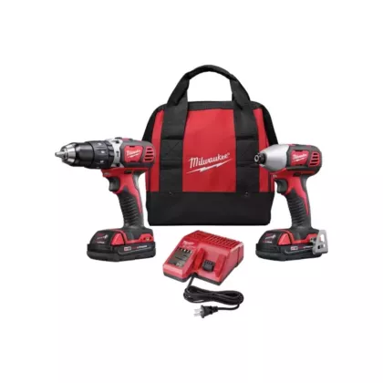 - Includes: M18™ Compact 1/2" hammer drill/driver, M18™ 1/4" Hex impact driver, M18™ Redlithium™ battery, M18™ & M12™ multi-voltage charger, Contractor bag