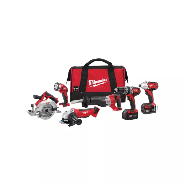 - Includes: (1) M18(TM) Cordless 1/2" Hammer Drill/Driver (Bare Tool) (2602-20), (1) M18(TM) SAWZALL(R) Reciprocating Saw (Bare Tool) (2620-20), (1) M18(TM) 6-1/2" Circular Saw (Bare Tool) (2630-20), (1) M18(TM) 1/4" Hex Compact Impact Driver (Bare Tool) (2650-20), (1) M18(TM) Cordless 4-1/2" Cut-off / Grinder (Bare Tool) (2680-20), (2) M18(TM) REDLITHIUM(TM) XC Extended Capacity Battery (48-11-1828), (1) M18(TM) & M12(TM) Multi-Voltage Charger (48-59-1812), (1) M18(TM) Work Light (Bare Tool) (49-24-0171), (1) Contractor Bag