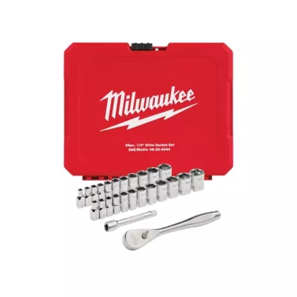 - Includes: 1/4" Drive ratchet (48-22-9014), 3" Extension, 5/32", 3/16", 7/32", 1/4", 9/32", 5/16", 11/32", 3/8", 7/16", 1/2", 9/16", 5 mm, 5.5 mm, 6 mm, 7 mm, 8 mm, 9 mm, 10 mm, 11 mm, 12 mm, 13 mm, 14 mm, 15 mm Standard sockets