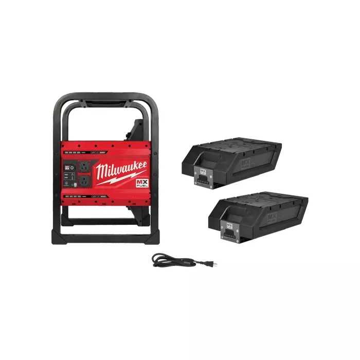 - Includes: (1) MX Fuel™ Carry-On™ 3600W/1800W Power supply, (2) MX Fuel™ Redlithium™ XC406 Battery packs, (1) Detachable charging cord