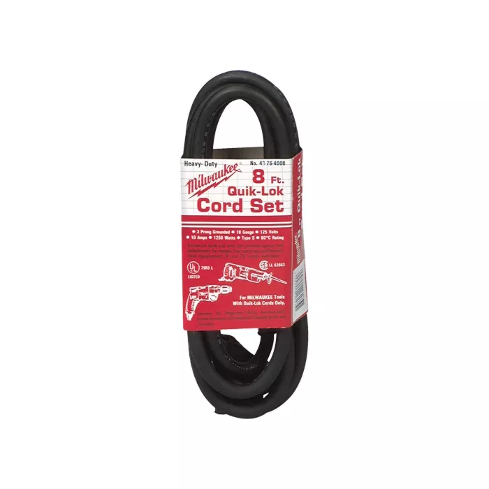 Cord can be quickly removed and attached to Milwaukee tools with the Quik-Lok® cord feature
