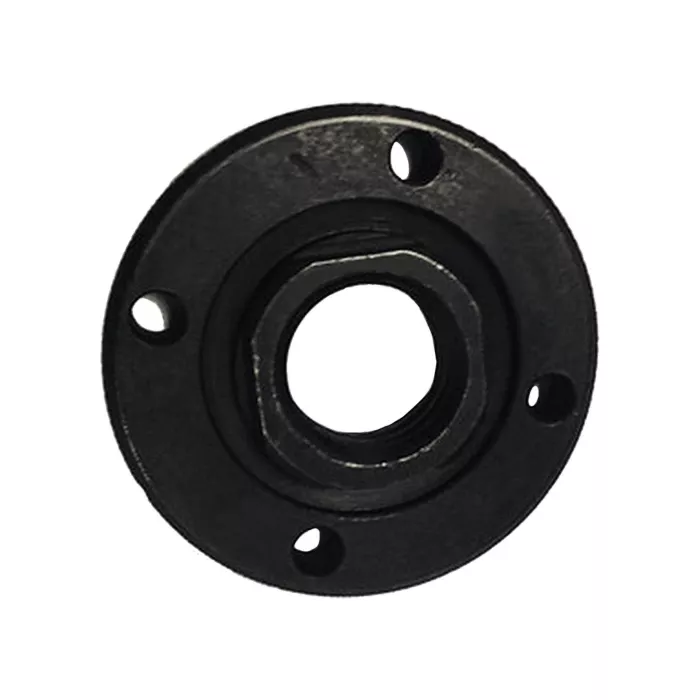 - The flange nut is then threaded on the spindle, preferably by using a spanner wrench which fits into the holes of the flange nut