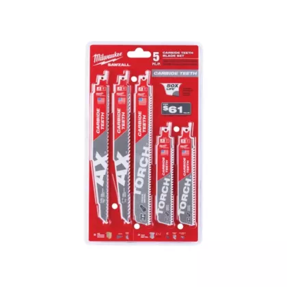 - Includes: (2) 9" AX™ with carbide teeth Sawzall® blades, (1) 9" Torch™ with carbide teeth Sawzall® blade, (2) 6" Torch™ with carbide teeth Sawzall® blades