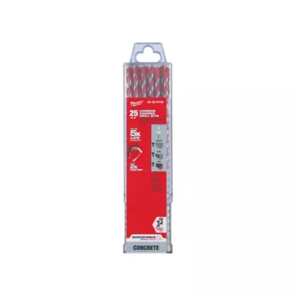 - Durable carbide tip for longer life in concrete and hard aggregate