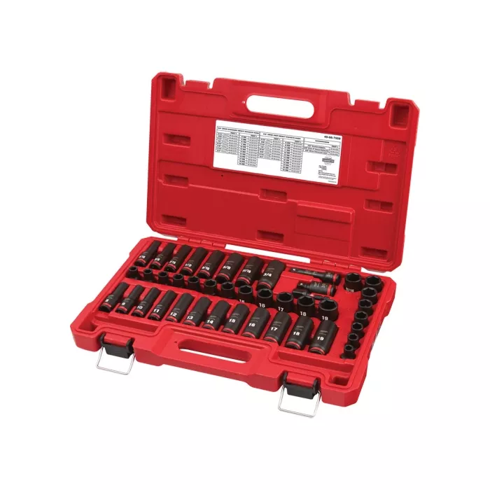 - Includes in Standard and Deep: 5/16, 3/8, 7/16, 1/2, 9/16, 5/8, 11/16, 3/4, 8, 9, 10, 11, 12, 13, 14, 15, 16, 17, 18, 19, and (1) 3" Extension, (1) Universal Joint, and (1) 3/8" Adapter