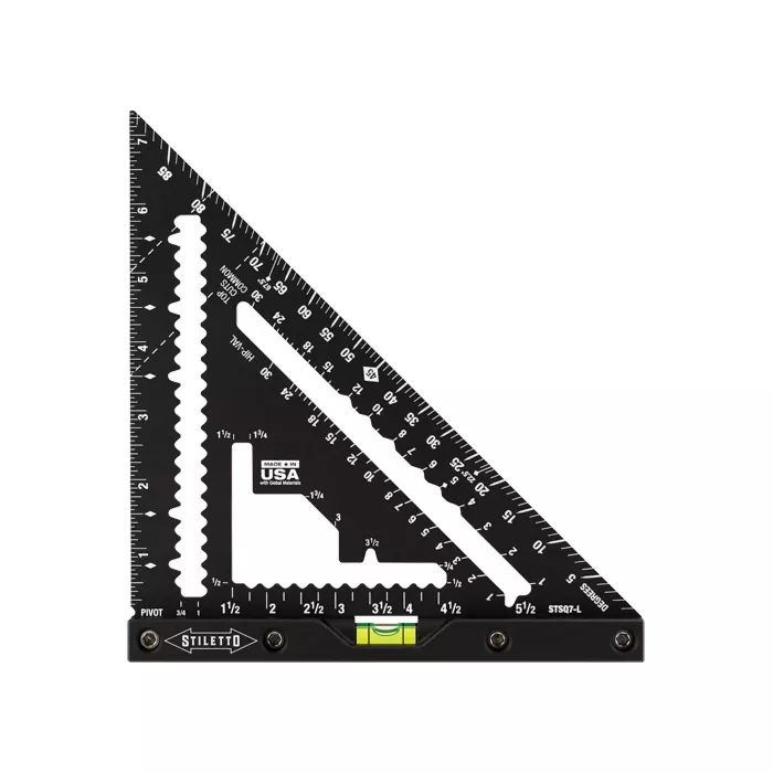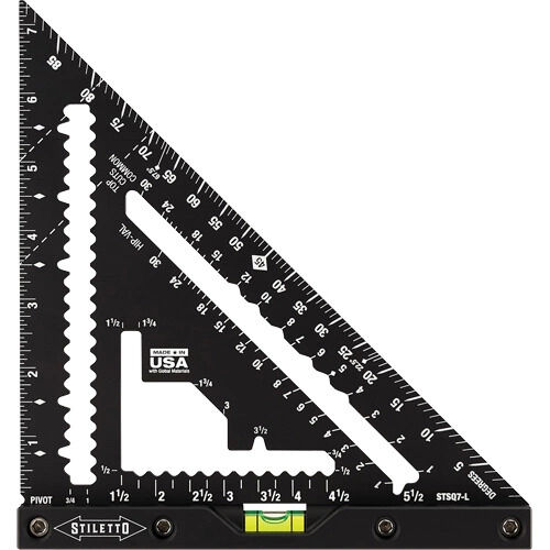 - Additional notches aid in laying out 2'x6' material, ripping boards, and marking rafter pitches