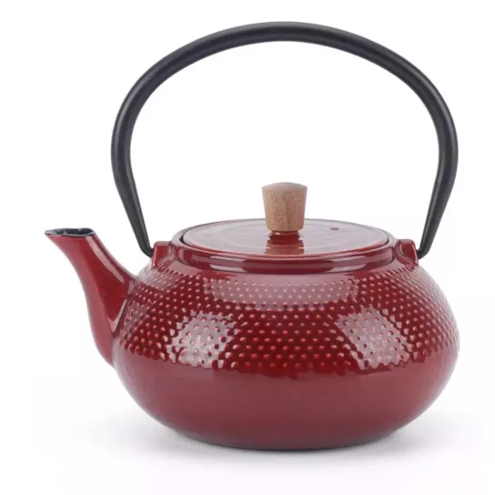 Minimal 20Oz Red Enameled Cast Iron Tea Pot Dot Pattern