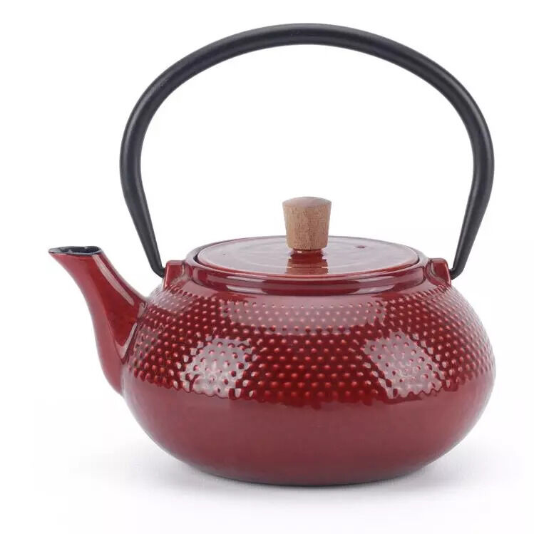 Minimal 600074901878 20Oz Red Enameled Cast Iron Tea Pot Dot Pattern
