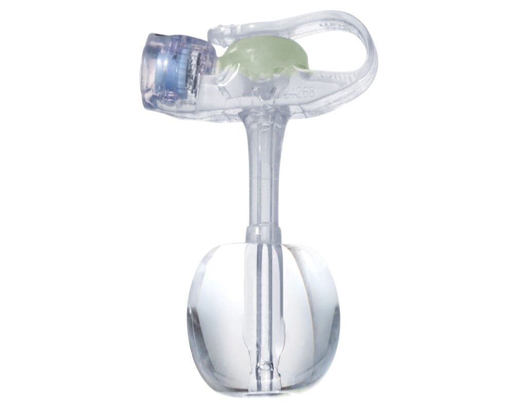 The MiniONE Balloon Button has an internal retention balloon with an exclusive apple shape that keeps the device in place. For insertion and removal, the balloon can be inflated and deflated in either a clinical setting or a home-care setting.