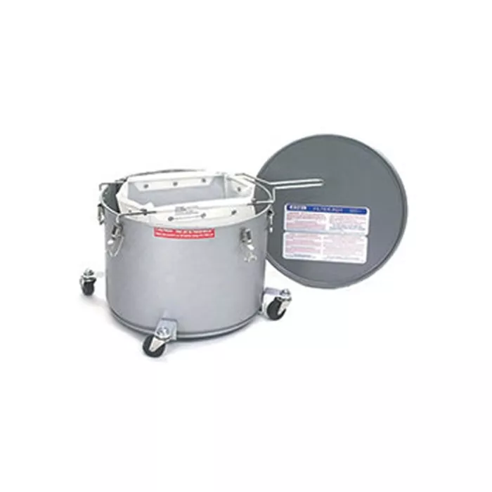 For filtering and safer handling of hot oil. Low profile to fit under drain valves.