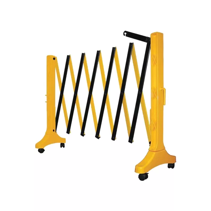 - Expandable plastic barricade providing an attractive, visible warning barrier