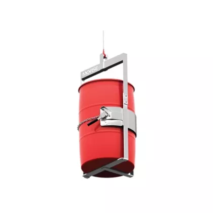 - Attaches to a monorail, crane or chain block and transports loaded drums in the upright position