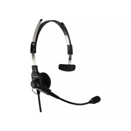 - Single-muff, adjustable headset has a boom microphone and an in-line PTT feature