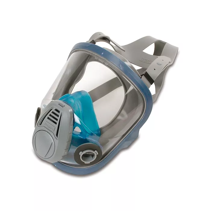 - Full-face respirator features a wraparound lens combined with a soft, pliable silicone facepiece