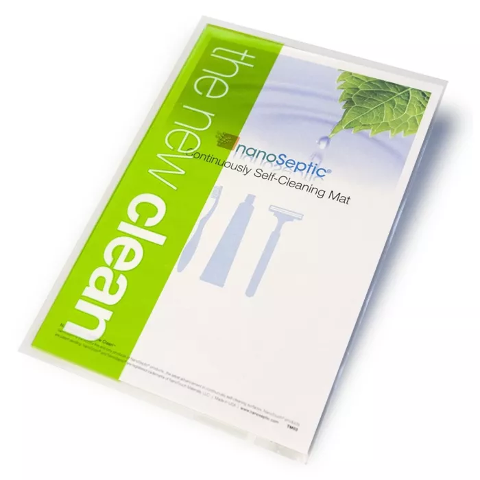 NanoSeptic Skins and Mats turn dirty high traffic, public touchpoints into continuously self-cleaning surfaces. Powered by light, NanoSeptic surfaces utilize mineral nano-crystals which create an oxidation reaction stronger than bleach. Working 24/7, the surface continually oxidizes organic contaminants. Unlike traditional disinfectants and cleaners, the NanoSeptic surface uses no poisons, heavy metals or chemicals, and nothing is released from the surface since the nano-crystals are molecularly bonded to the material. NanoSeptic meets Health Canada requirements for all viruses, including COVID-19.