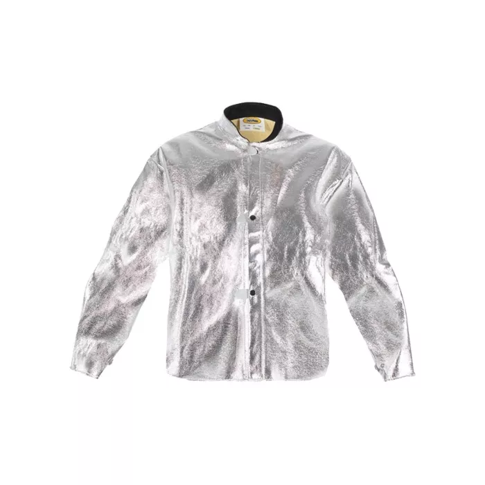 - Features a straight collar, storms flaps, snap closure, and reinforced leather pulls tabs