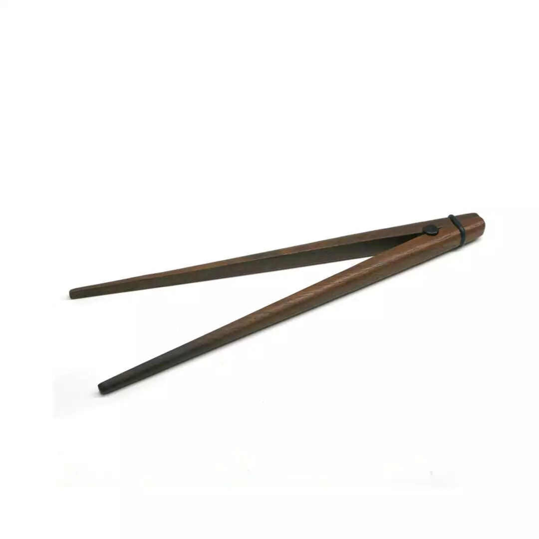 Tongs, 22cm, dark acacia. Perfect to use as chopsticks, to serve hors d'oeuvres, appetizers and more. Made of acacia wood, a sustainable, richly grained wood prized for its density, hardness and uniquely patterned glow. Resists water penetration and will not absorb stains or odours. Hand-wash. Not for use in the microwave or dishwasher. Do not soak or submerge in water.