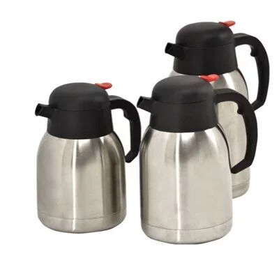 This stainless steel carafe features a vacuum liner with excellent heat retention and one touch pour for easy serving.