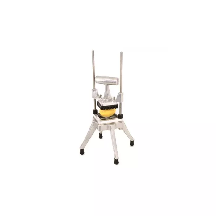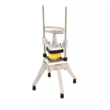 Vertical potato cutter is designed to effectively cut potatoes with ease. The cutter comes equipped with four non-skid feet for added stability. This cutter comes with sharp stainless steel interchangeable cutting grid and built for long lasting performance.