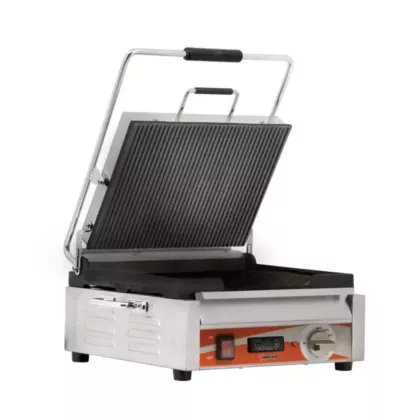 The Nella 12" x 15" Panini Grill with Grooved Grill Surfaces & Timer is the perfect grill to serve your favorite sandwiches anytime. This Sandwich Grill has a stainless steel body with cast iron grilling surfaces for easy cleaning. Ideal for sandwiches, burger, quesadillas, panini, foccacia, and pita sandwiches.