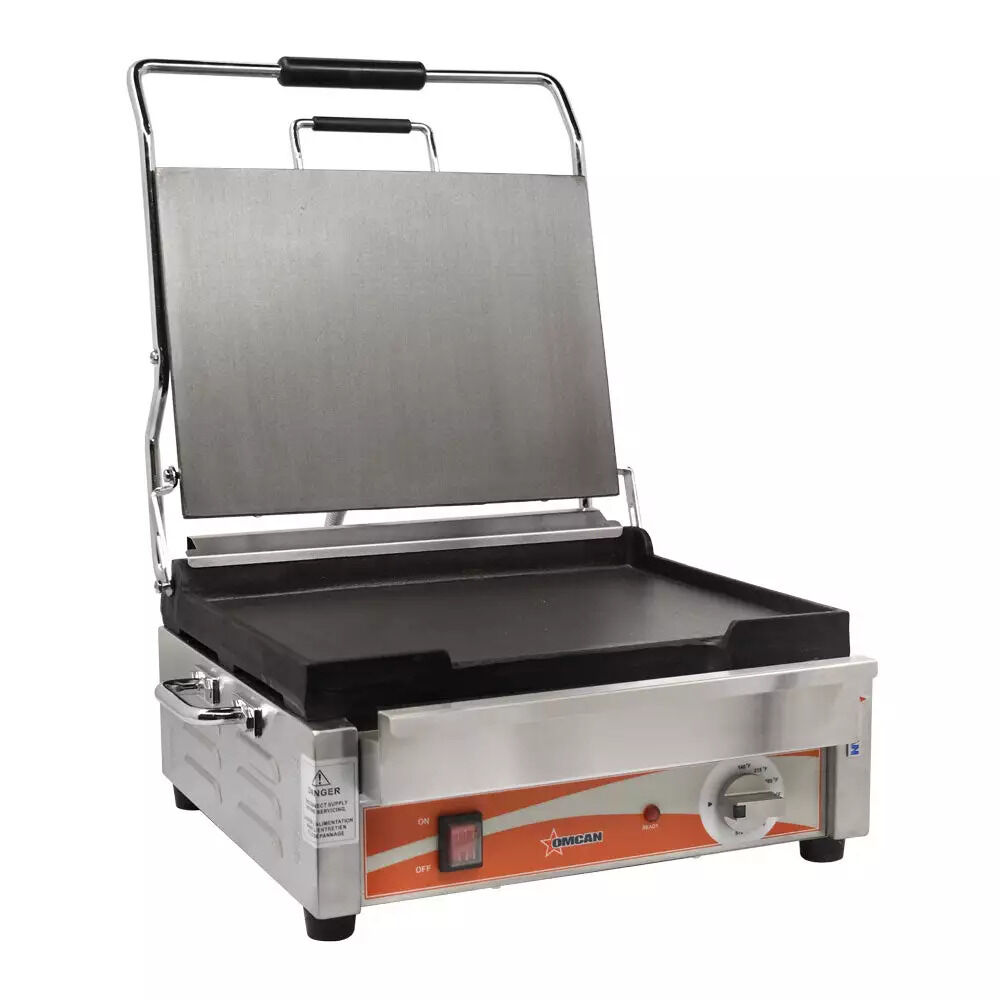 The Nella 12" x 15" Single Panini Grill with Smooth Grill Surfaces is the perfect grill to serve your favorite sandwiches anytime. This Sandwich Grill has a stainless steel body with cast iron grilling surfaces for easy cleaning. Ideal for sandwiches, burger, quesadillas, panini, foccacia, and pita sandwiches.