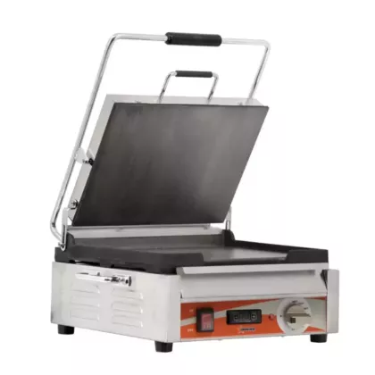 The Nella 12" x 15" Single Panini Grill with Smooth Grill Surfaces & Timer is the perfect grill to serve your favorite sandwiches anytime. This Sandwich Grill has a stainless steel body with cast iron grilling surfaces for easy cleaning. Ideal for sandwiches, burger, quesadillas, panini, foccacia, and pita sandwiches.