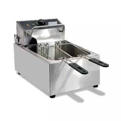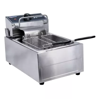 These counter top electrical deep fryers are ideal for small to medium applications. The body is made of stainless steel to allow easy cleaning. Equipped with a limit switch to prevent overheating. These fryers are controlled by a thermostat. Operating temperatures range from 50°-190°C /122°-374°F.