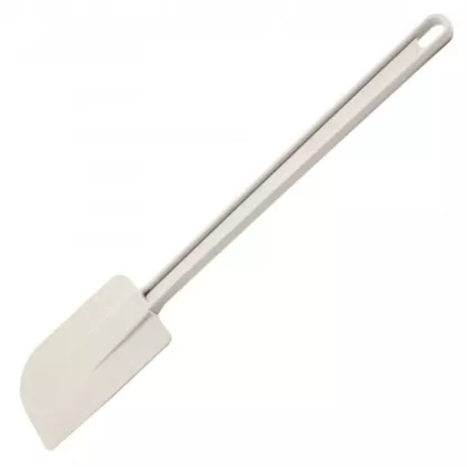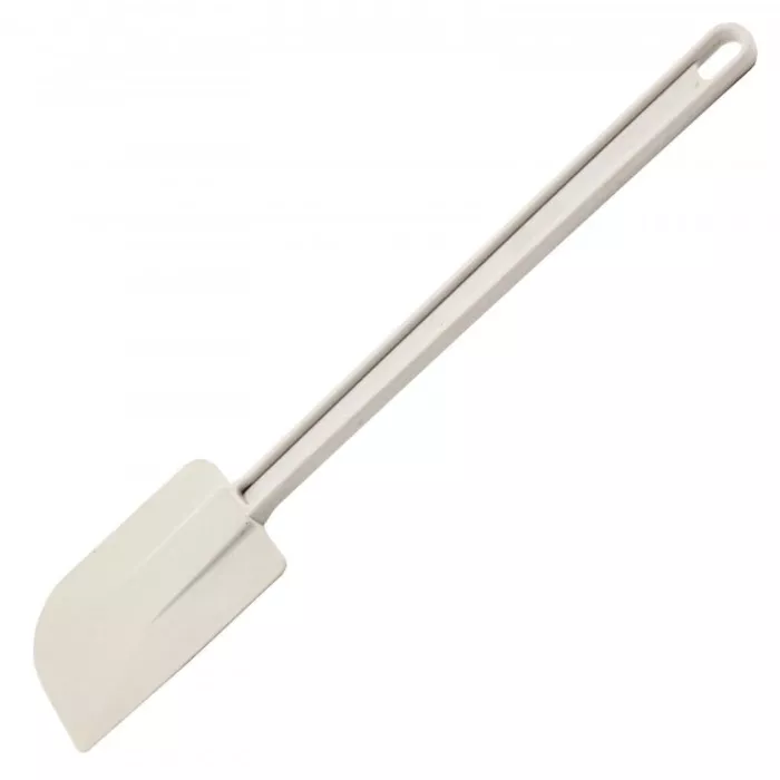 Designed with a flat blade to accommodate a wide range of baking task. The plastic white handle is easy to grip and features an end loop to conveniently hang for storage.