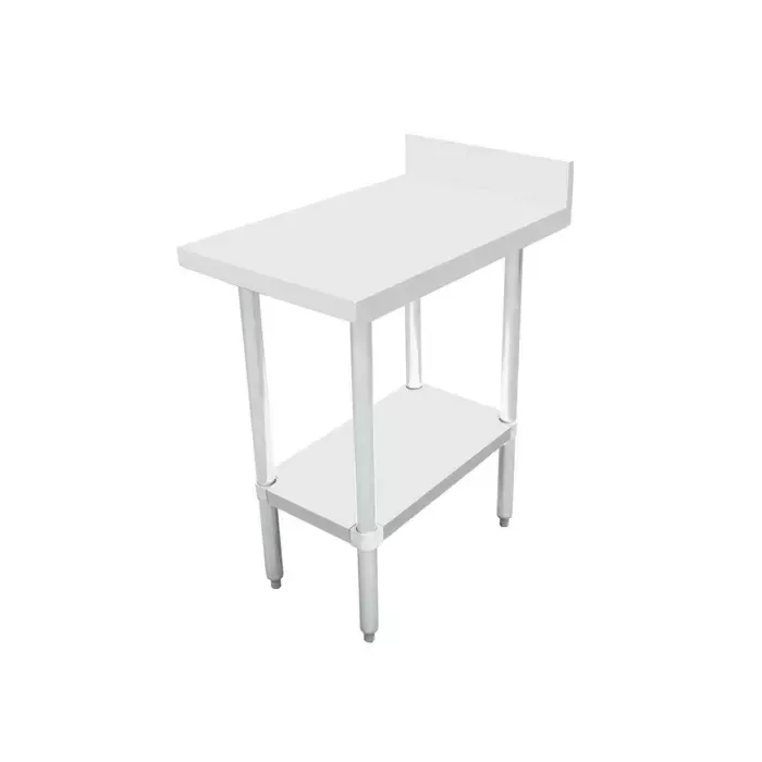 The Nella 18" x 30" Filler Table is the ultimate addition to your kitchen, offering both functionality and durability. This equipment filler table, with its 18"W x 30"D size, is designed to fit seamlessly into any kitchen layout, providing extra workspace and storage where it's needed most. The 4" backsplash protects your walls from spills and splatters, while the flat edges contribute to a clean and streamlined appearance.