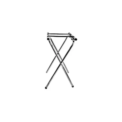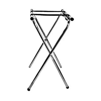 This 31" chrome tray stand is equipped with two stretched secure belts on top to form a sturdy platform for your serving trays. It is designed to be foldable for portability and storage efficiency. The chrome finish makes it attractive and easy to clean.