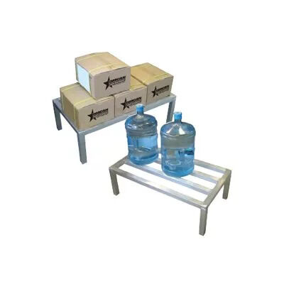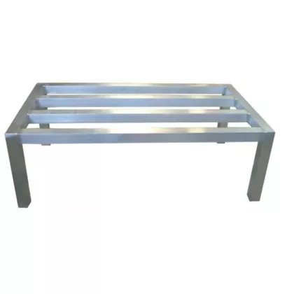 Omcan dunnage racks are designed to store products off the floor for sanitation and damage prevention. They are made of welded 1 1/2" square aluminum tube which provides maximum strength and durability. Fully assembled. 20” x 48” x 12”. Capacity: 1600 lbs.