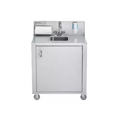 Introducing the Nella 25" Portable Hand Sink with Backsplash, Water Heater & Pump (OM46788) – the ultimate solution for hygienic and efficient handwashing in any location. This versatile hand sink features a compact design with a 12" x 14" x 6" bowl and a 9-1/2" backsplash to protect your walls from water splashes. The unit is equipped with a deck-mounted 4" center faucet and a 4" gooseneck spout, ensuring ease of use and accessibility.