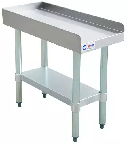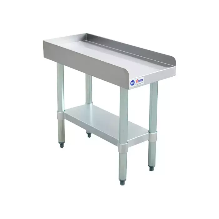 This 30” x 12" kitchen equipment stand is perfect for holding heavy countertop kitchen equipment such as mixers, grinders, slicers, griddles, and burners. Made of durable 18-gauge 430 stainless steel and 18-gauge galvanized steel undershelf, it's built to last. The galvanized legs and socket, as well as the adjustable plastic bullet feet, ensure stability and levelness on any surface.