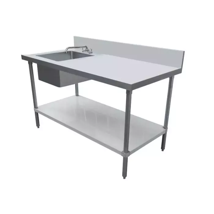 Nella 30" x 72" All Stainless Steel Table with Left Sink, 6" Backsplash